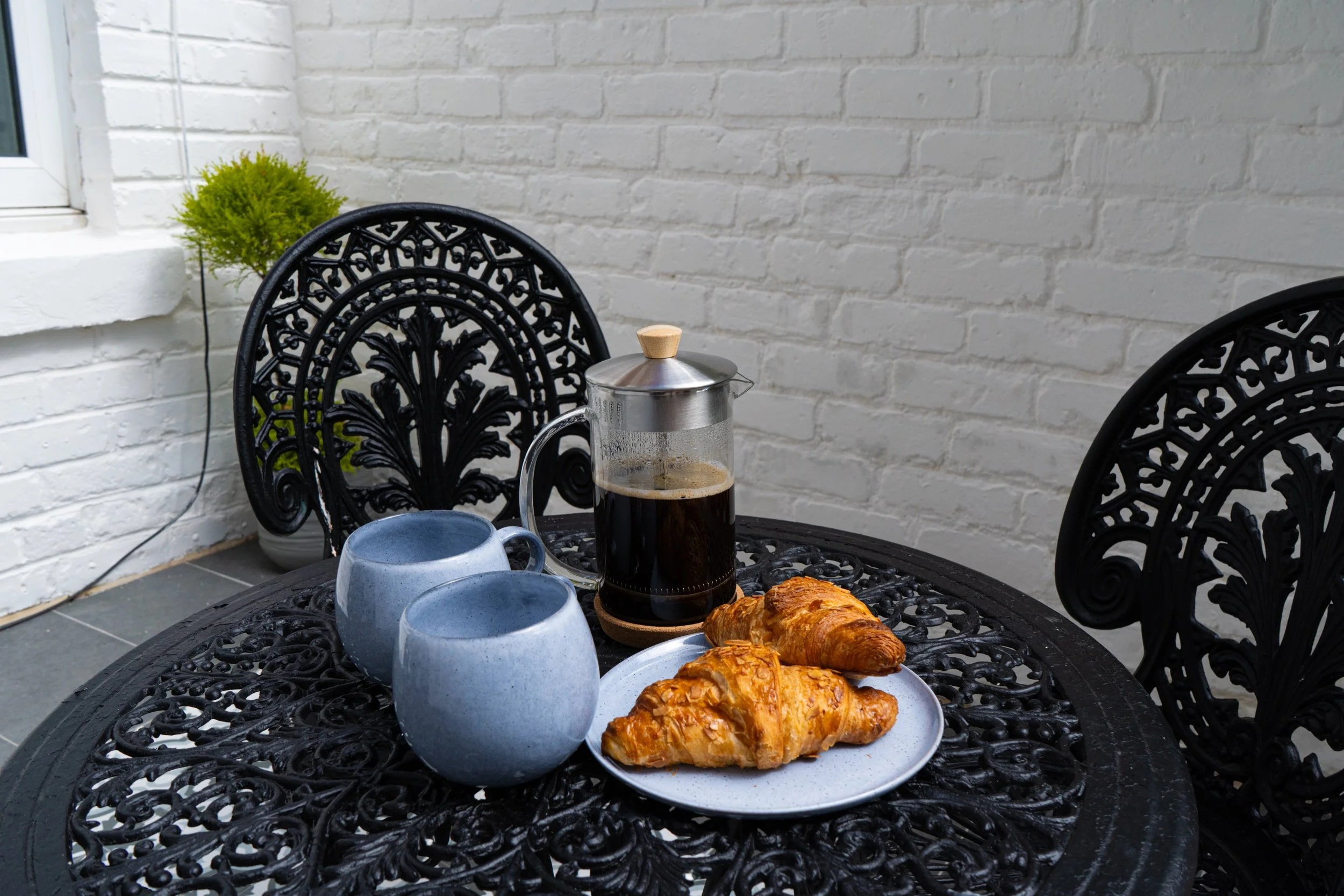 And then there is the outside. The courtyard is made for morning coffee and pastries, or dinner in the last of the light. The small grassed area is a peaceful spot for spring mornings and summer evenings, a little pocket of fresh air for both guests and their four-legged friends.